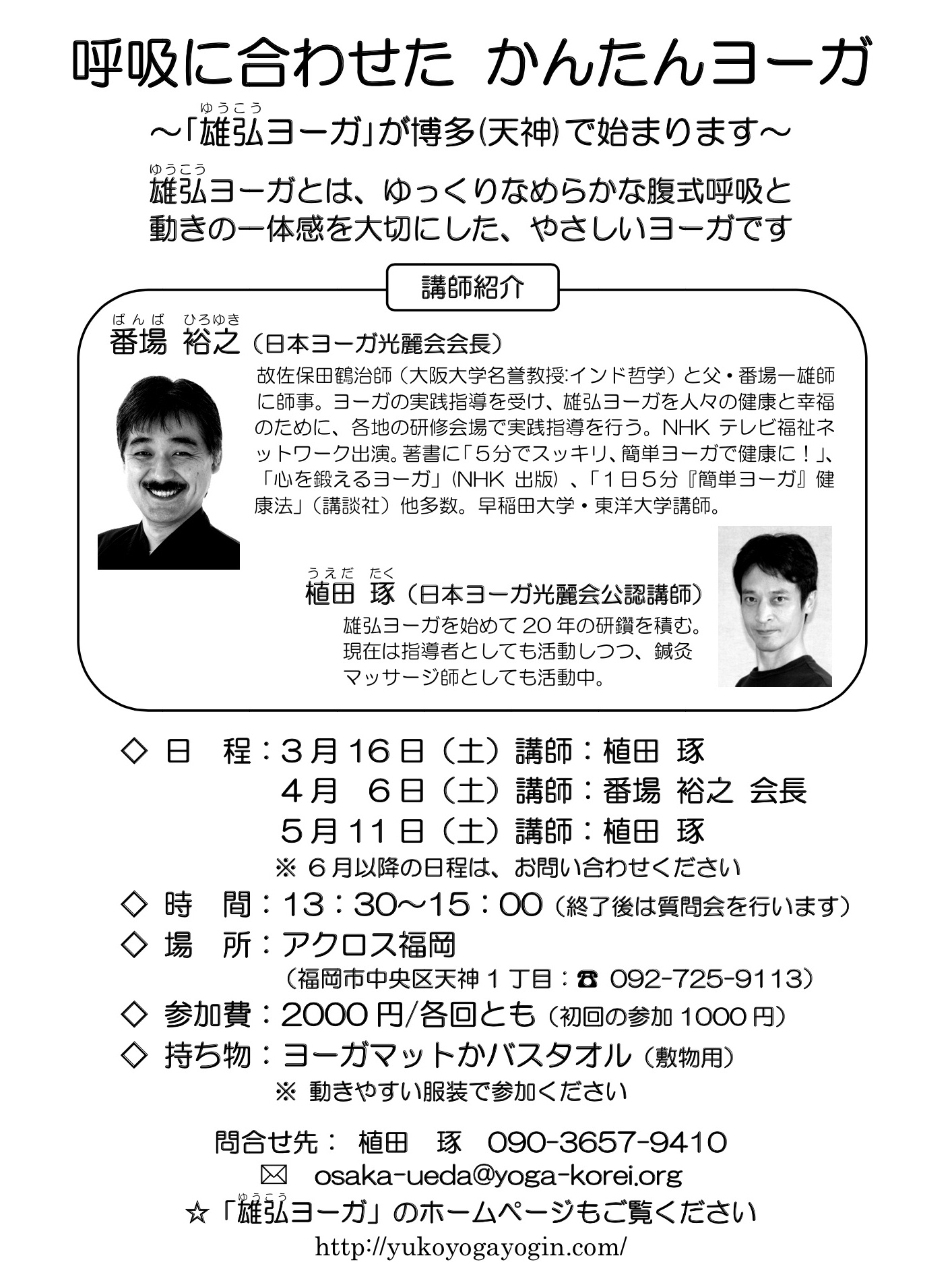 申込・問合せ 植田琢(日本ヨーガ光麗会)