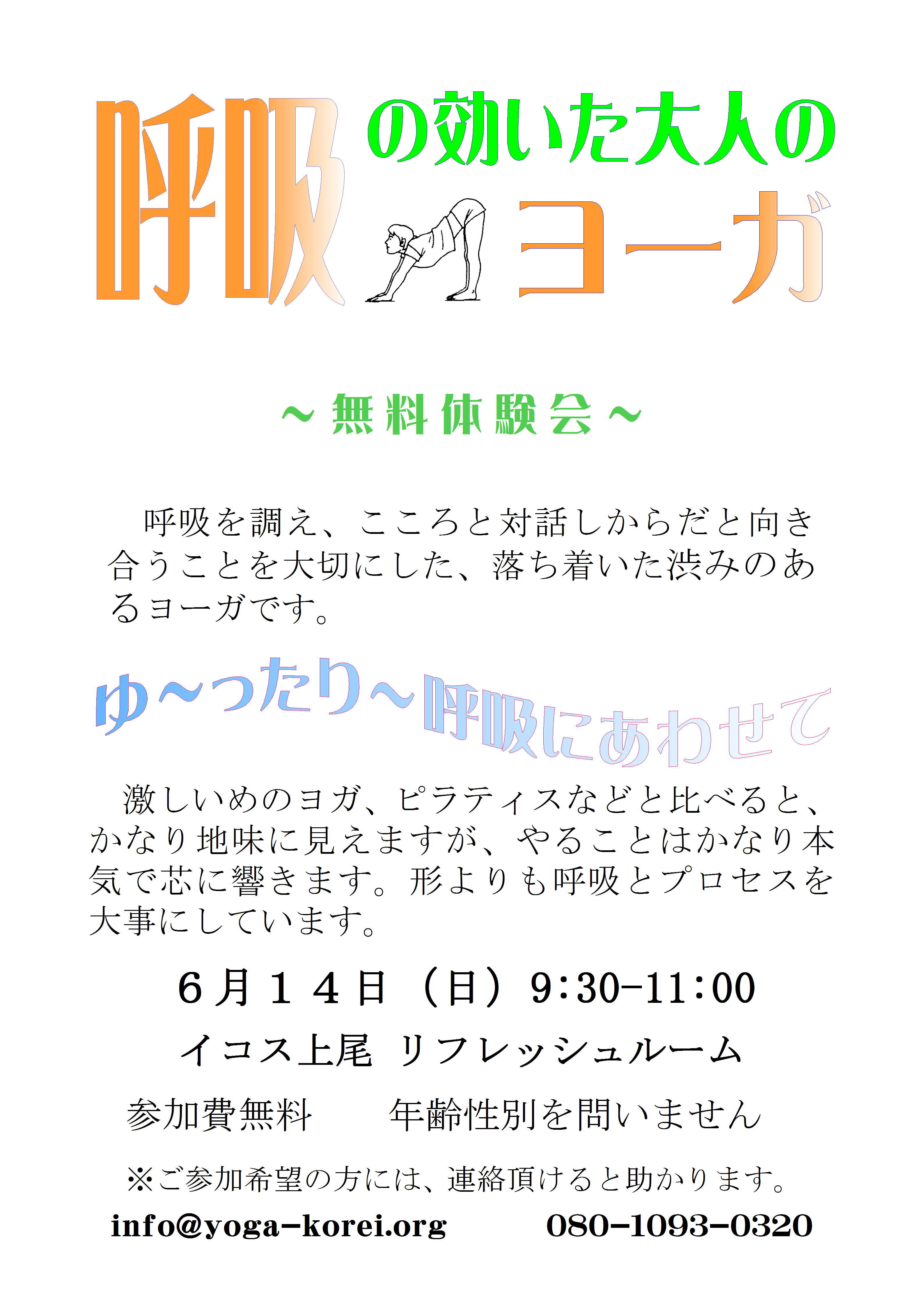埼玉・上尾で「呼吸の効いた渋みのあるヨーガ(雄弘ヨーガ)」の無料体験会を行います。
